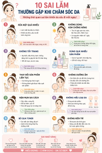 Meta description: Tổng hợp những sai lầm thường gặp khi chăm sóc da khiến da nổi mụn, kích ứng và lão hóa nhanh mà nhiều người mắc phải.